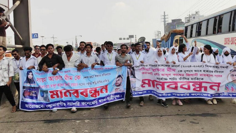 সায়মা হত্যার বিচার দাবিতে শিক্ষার্থীদের সড়ক অবরোধ