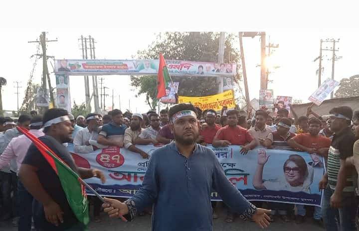 জামপুরে ৩১ দফার পক্ষে স্বেচ্ছাসেবক দলের লিফলেট বিতরণ