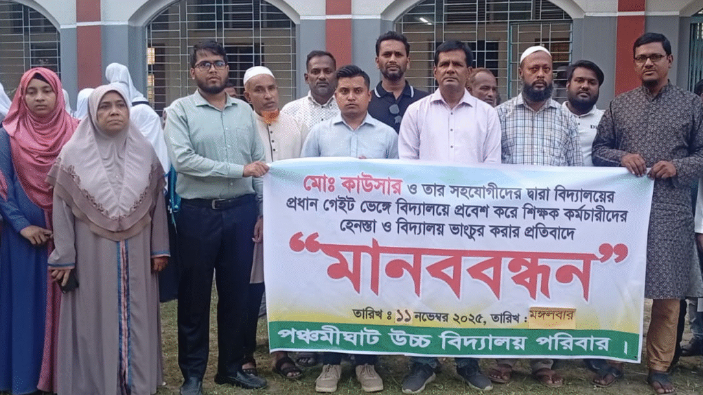 শিক্ষকদের লাঞ্ছিত করার প্রতিবাদে মানববন্ধন