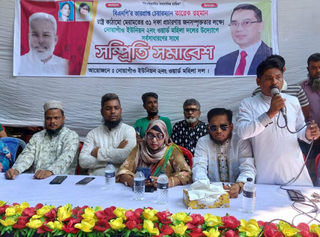 এসময় আরও উপস্থিত ছিলেন- নোয়াগাঁও ইউনিয়ন বিএনপির সহ-সভাপতি আ. হালিম, যুগ্ম সম্পাদক বাবুল, ৪নং ওয়ার্ডের সভাপতি আনিছ, ২নং ওয়ার্ডের সিনিয়র সহ-সভাপতি গনি মিয়া, সহ-সভাপতি আমজাদ, সিনিয়র যুগ্ম সম্পাদক মনির, ১নং ওয়ার্ড বিএনপির সিনিয়র সহ-সভাপতি মো. আহসান উল্লাহ, সংরক্ষিত নারী ইউপি সদস্য সাহিদা আক্তার, মিনারা বেগম, নাসিমা বেগম, জায়েদা বেগম প্রমুখ।