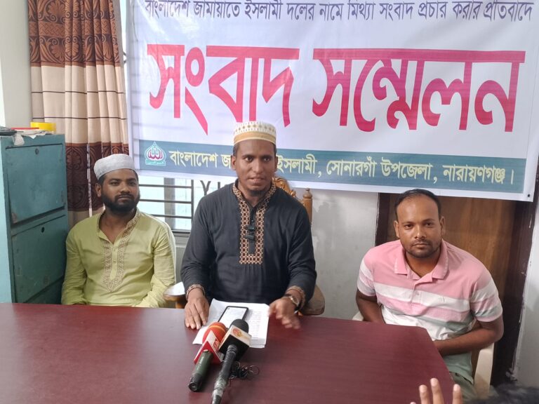 সোনারগাঁ (নারায়ণগঞ্জ) প্রতিনিধি: নারায়ণগঞ্জের সোনারগাঁয়ে বাংলাদেশ জামায়াতে ইসলামীকে জড়িয়ে কিছু গণমাধ্যমে উদ্দেশ্য প্রণোদিতভাবে ভুল ও মিথ্যা সংবাদ প্রকাশ করায় সংবাদ